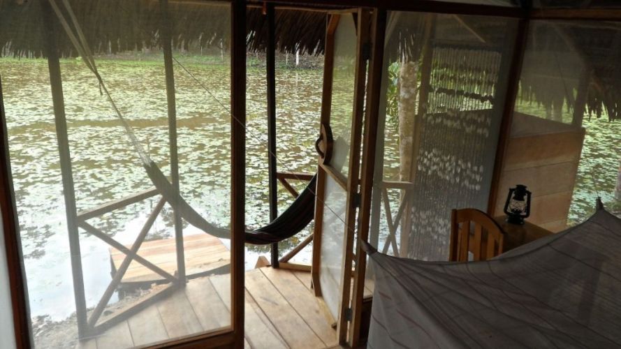 At Dreamglade we have two accommodation options, private lake-side “tambos” (small huts) or our guests can choose to sleep in the Communal Hut “Mapacho” (large tambo with 3 bunk bed’s) which is fine for people on a tighter budget. The Mapacho has comfortable mattresses with sheets, blankets and pillows and is completely screened in to keep out the forest insects.